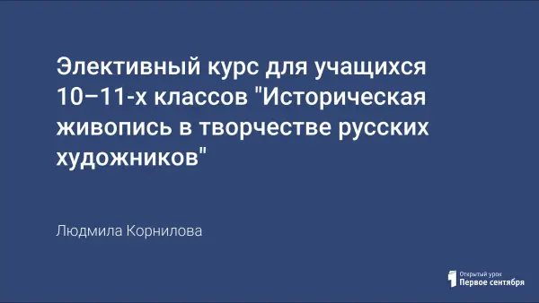 Актуальность курса объясняется тем, что, в насыщенной сложным материалом программе отводится ограниченное время вопросам культуры, и учителю требуется немало усилий, чтобы суметь изложить их достаточно полно. Исторический жанр – один из самых трудоемких жанров живописи. Художник выражает свое отношение к миру, дает оценку жизненных явлений.