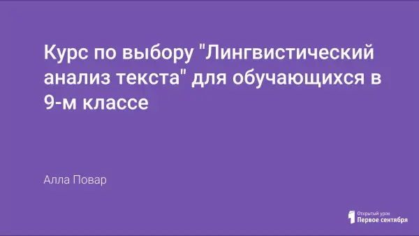 Курс «Лингвостилистический анализ текста» адресован обучающимся 9-го класса. Данный курс поможет обучающимся освоить доминирующие культурные ценности, отраженные в языке. Обучающиеся получат реальную возможность повысить свою лингвистическую, языковую и коммуникативную компетенции.