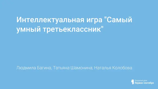 Интеллектуальная игра – это не только соревнование в знаниях, но и один из интересных и эффективных способов расширения кругозора детей. Развивающие игры поддерживают у детей интерес к учебе, выявляют их способности к тем или иным предметам. Интеллектуальная игра "Самый умный третьеклассник" проводится в пять этапов. Проводится по убывающей системе. К последнему этапу выходят 5 человек. Из них – 3+1 (самый умный и тройка сильнейших).