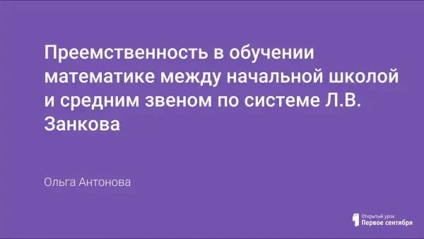 При переходе из начальной школы в среднее звено возникает проблема преемственности в обучении. Есть два варианта решения проблемы. Наличие комплекта учебников – важная составляющая преемственности, но не решающая. На первый план выходит учебная деятельность. Выделяем три типа деятельности учителей в классах развивающего обучения и 6 принципов занковской системы.