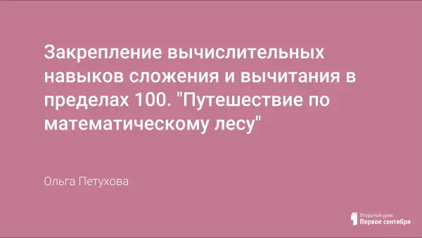 Учащиеся на уроке закрепляют вычислительные навыки сложения и вычитания чисел в пределах 100. Развивают логическое мышление, внимание. Автор воспитывает чувство взаимопомощи.