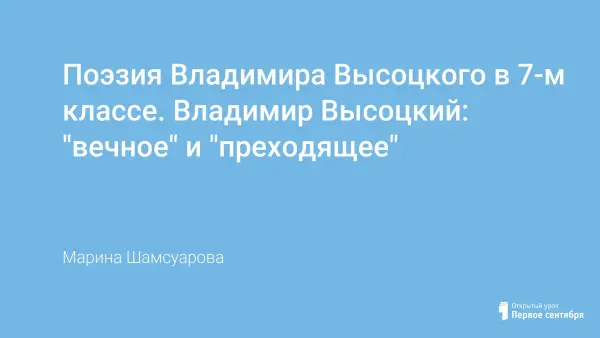 В учебном комплексе «Школа-2100» для чтения даны статья С.Высоцкого «Жил и пел для нас» и стихотворение В.Высоцкого «Я не люблю», которые позволят определить «систему жизненных ценностей» легендарного поэта. На уроке-исследовании ученики знакомятся с поэтическим миром В.Высоцкого, что в 9-м классе поможет сопоставить стихотворения А.С. Пушкина «Я памятник себе воздвиг нерукотворный…» и В.Высоцкого «Памятник», а в 11-м классе составить представление о его эстетическом идеале.