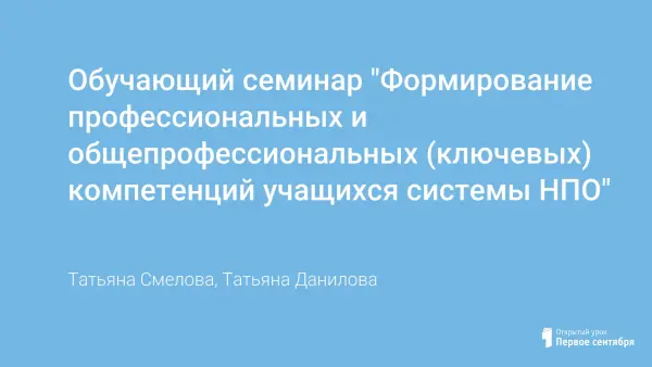 Обучающий семинар "Формирование профессиональных и общепрофессиональных (ключевых) компетенций учащихся системы НПО"