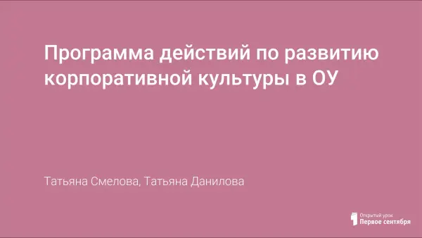 Программа формирования корпоративной культуры является общепедагогической, подразумевает активное включение в процесс всего педагогического коллектива, персонала, родителей и учеников.