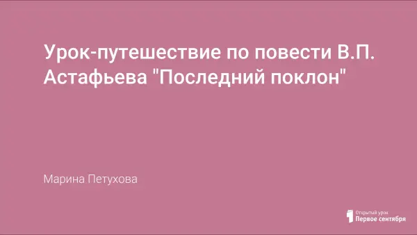 Автор работы знакомит учащихся с биографией и творчеством В.П. Астафьева; кратко анализирует основные главы повести; развивает умение анализа художественного текста; воспитывает чувство сострадания и любви к людям.