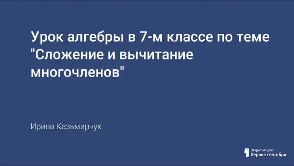 На уроке формируются умения и навыки сложения и вычитания многочленов, приведения подобных слагаемых и