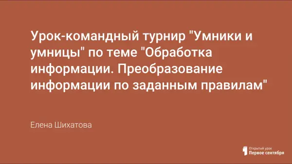 В ходе урока актуализируется понятие алгоритма. Рассматривается возможность и особенности исполнения алгоритмов различными исполнителями. Изучаются характеристики исполнителя, необходимые для составления алгоритма для него, на примере учебного исполнителя "Кузнечик". Учебный исполнитель представлен flash-роликом и используется на практической работе по составлению алгоритмов.