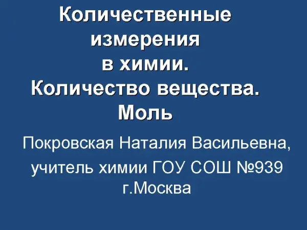 Основной целью занятия является формирование понятий: количество вещества, моль, молярная масса, число Авогадро, молярный объем, закон Авогадро.