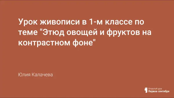 В данной работе представлен план-конспект урока по живописи, где учащиеся 1-го класса ДШИ знакомятся с понятиями тонового и цветового контраста и выполняют с натуры этюды овощей и фруктов на контрастном фоне с ярко выраженными рефлексами. Это занятие способствует созданию положительного настроя для успешной и активной работы учащихся и пониманию, как изобразить на плоскости листа предмет объёмным посредством светотени.
