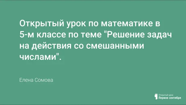 Урок построен в соответствии с учебником И.И. Зубаревой, А.Г. Мордкович «Математика. 5-й класс». На уроке рассматриваются различные типы задач на действия со смешанными числами, расширение кругозора учащихся реализуется решением примеров и отгадыванием названия дерева, не растущего в нашей местности. Наличие игрового момента снимает напряженность урока.