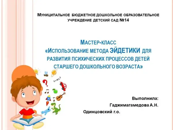 Мастер-класс «Использование метода эйдетики для развития психических процессов детей старшего дошкольного возраста»