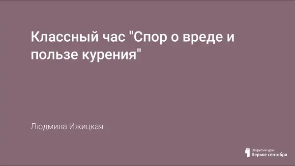 Классный час "Спор о вреде и пользе курения"