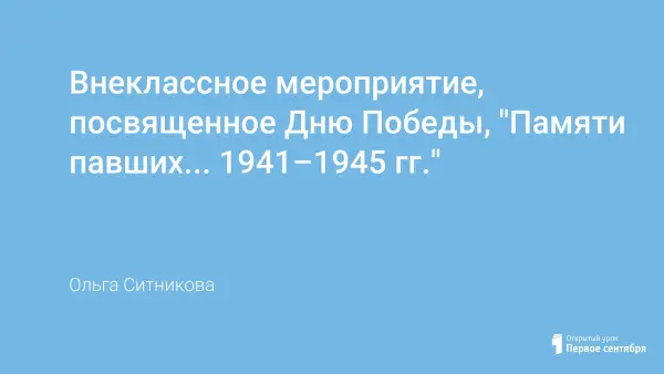 Мы родились и выросли в мирное время. Мы никогда не слышали воя сирен, извещающих о военной тревоге, не видели разрушенных фашистскими бомбами домов, не знаем, что такое нетопленое жилище и скудный военный паек. Нам трудно поверить, что человеческую жизнь оборвать так же просто, как утренний сон. Об окопах и траншеях мы можем судить только по кинофильмам да рассказам фронтовиков. Для нас война – история. Славной победе нашего народа в Великой Отечественной войне мы посвящаем сегодняшнее мероприятие.