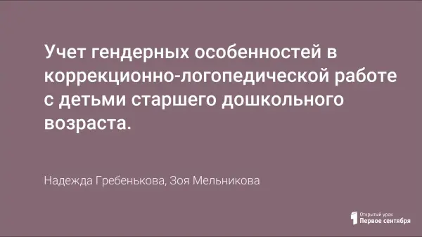 Учет гендерных особенностей в коррекционно-логопедической работе с детьми старшего дошкольного возраста.