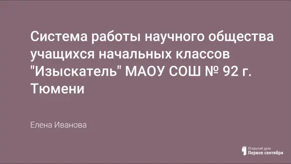 В наше время актуальной стала проблема работы с одаренными детьми. Ведь речь идет не только о просвещении, но и о наиболее полном удовлетворении всех прав ученика, в том числе о праве на получение глубоких и полных знаний. Одна из форм работы, позволяющая наиболее полно удовлетворить эту потребность, – работа в школьном научном обществе. В статье представлен пример такой работы.