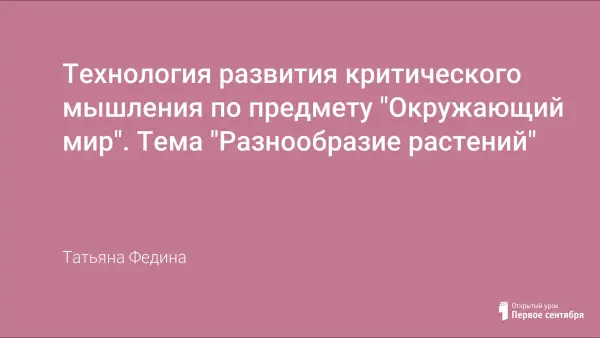 Урок построен в технологии развития критического мышления. Важным в данной технологии является следование трем фазам: вызова, осмысления, рефлексии и соблюдение определенных условий: активности участников процесса, разрешение высказывать разнообразные идеи. В ходе занятия используются приемы: таблицы «З–Х–У», «Шесть шляп мышления», кластера. Цель применения данных приемов – развитие интеллектуальных способностей учащихся, необходимых не только в учебе, но и в обычной жизни. Занятие помогает познакомить учащихся с различными группами растений, видами растений; формировать умение работать с текстом учебника, с атласом-определителем, рисунками; учить детей рассуждать, делать выводы.