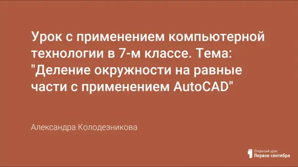 В данном уроке повторение темы "Деление окружности на равные части" выполняют на компьютерной программе AutoCAD. Ручное выполнение деления окружности учащиеся выполнили на предыдущем уроке. С введением курса компьютерной графики в обучении предмета черчения намного повысился интерес учащихся к технической графике.