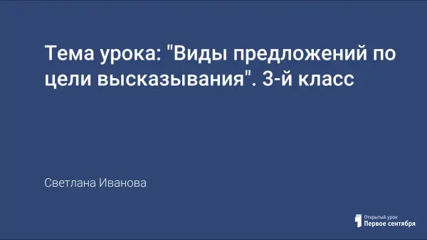 Цель урока: создать условия для открытия учащимися новых теоретических сведений о предложении и его видах по цели высказывания и освоения способов применения этих сведений в языковой и речевой практике.