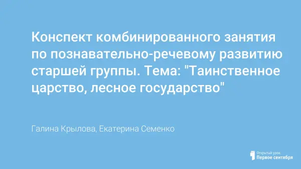 Конспект комбинированного занятия по познавательно-речевому развитию старшей группы. Тема: "Таинственное царство, лесное государство"