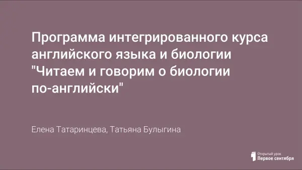 Программа интегрированного курса английского языка и биологии "Читаем и говорим о биологии по-английски"