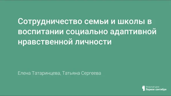 Сотрудничество семьи и школы в воспитании социально адаптивной нравственной личности
