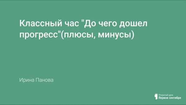 Классный час рассчитан на учащихся среднего звена. Сегодня очень остро стоит вопрос о том, что наши дети все свое свободное время проводят за компьютером или за мобильным телефоном. В связи с этим автор решила подготовить такой классный час, в котором бы сами учащиеся попытались разобраться, в чем положительные стороны технического прогресса, а в чем отрицательные (ребята делятся на группы и каждая группа приводит свои аргументы).
