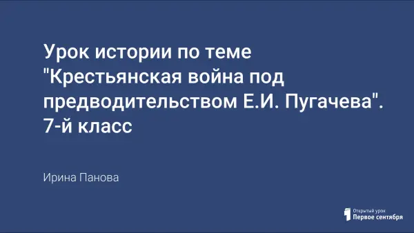 В ходе урока учащиеся выявляют причины крестьянской войны под предводительством Пугачева, знакомятся с основными этапами войны.
