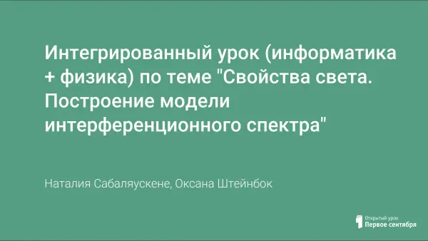 Интегрированный урок (информатика + физика) по теме "Свойства света. Построение модели интерференционного спектра"