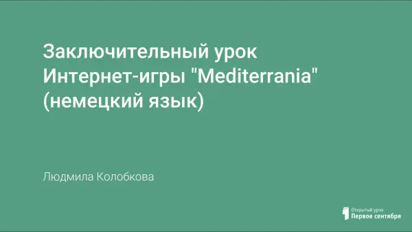 Международная Интернет-игра “Mediterrania” на сайте www.goethe.de предназначена для учащихся, изучающих немецкий язык в течение 1-3 лет. Её можно использовать для повышения мотивации в изучении немецкого языка, для формирования коммуникативной компетенции учащихся при изучении тем «Мы путешествуем по миру», «Где живут друзья по переписке».