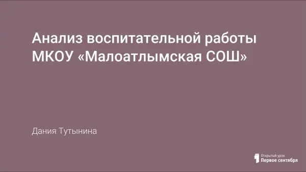 В статье представлен анализ воспитательной работы МКОУ «Малоатлымская СОШ» за 2013–2014 учебный год.