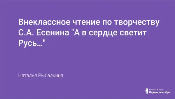 Урок представляет творчество талантливого русского поэта С. Есенина, рассказывает о его большой любви к Родине, раскрывает особенности его лирики, развивает речь, мышление, память учащихся, способствует воспитанию трепетного, нежного чувства к родной земле, к своему Отечеству.