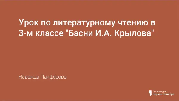 Данный урок является последним в изучении творчества И.А. Крылова. Представленный конспект урока позволяет обобщить знания детей о творчестве великого русского баснописца, его басен в форме инсценировок, выразительного чтения, с использованием творческих заданий.