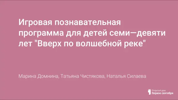 Игровая познавательная программа для детей семи—девяти лет "Вверх по волшебной реке"