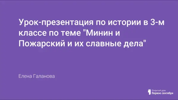 Урок для 3-го класса (программа «Гармония») по истории России проходит в форме активного диалога учителя и учеников, сопровождается мультимедийной презентацией. Использовано много дополнительного материала, рассказывающего о восхождении на царствование Михаила Романова, о подвиге Ивана Сусанина. Дети также узнают о том, почему именно 4 ноября мы отмечаем День народного единства.