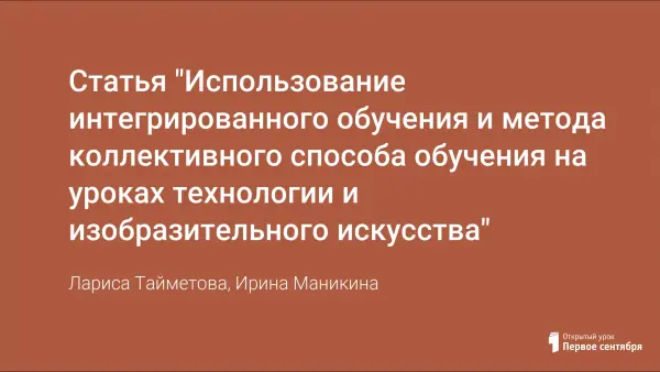Статья "Использование интегрированного обучения и метода коллективного способа обучения на уроках технологии и изобразительного искусства"