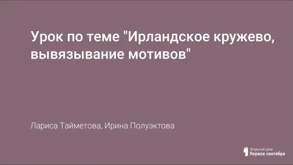 Урок по теме "Ирландское кружево, вывязывание мотивов"