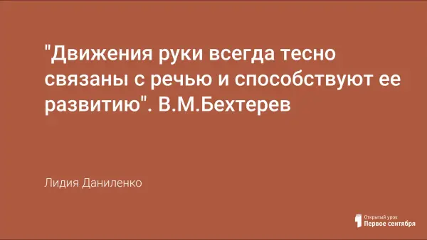Для определения уровня развития речи первых лет жизни разработан следующий метод: ребенка просят показать один пальчик, два пальчика и три. Дети, которым удается изолированное движение пальцев - говорящие дети. Если мышцы пальцев напряжены, пальцы сгибаются и разгибаются только вместе и не могут двигаться изолированно, то это не говорящие дети. До тех пор, пока движения пальцев не станут свободными, развитие речи и, следовательно, мышления будет затруднено.