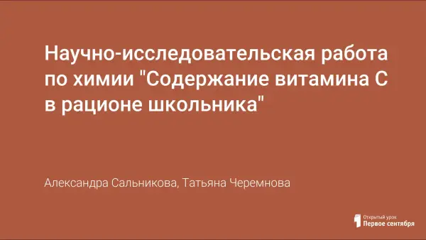 Научно-исследовательская работа по химии "Содержание витамина С в рационе школьника"