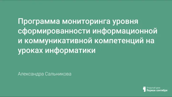 Целью работы является диагностика и оценка уровня сформированности информационных и коммуникационных компетенций на уроках информатики, проводимая с помощью мониторинга, данные которого используются для коррекции учебного процесса. Даны рекомендации для создания диагностического инструментария.