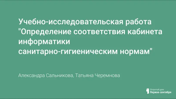 Учебно-исследовательская работа "Определение соответствия кабинета информатики санитарно-гигиеническим нормам"