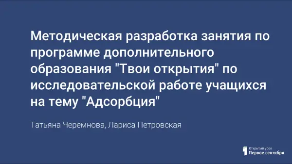 Методическая разработка занятия по программе дополнительного образования "Твои открытия" по исследовательской работе учащихся на тему "Адсорбция"