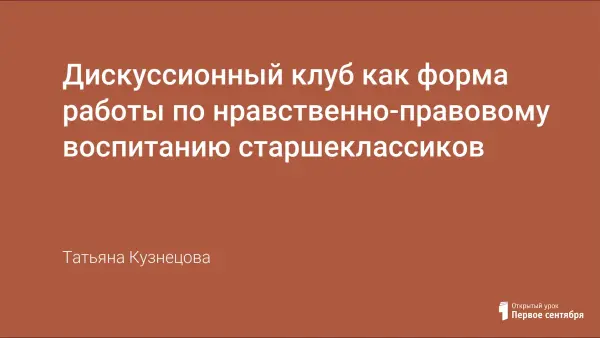Дискуссионный клуб как форма работы по нравственно-правовому воспитанию старшеклассиков
