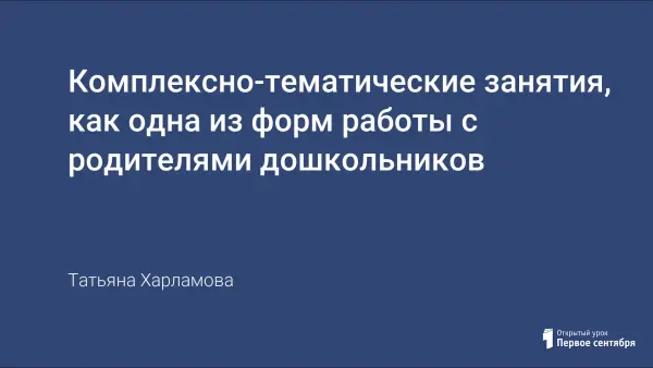Комплексно-тематические занятия, как одна из форм работы с родителями дошкольников