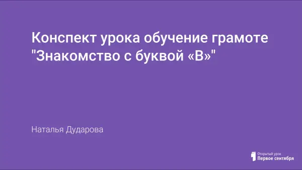 Цели урока: сформировать представление о букве В и звуках [в], [в']; научить читать слова и слоги с этой буквой; способствовать развитию фонематического слуха, памяти, образного мышления.
