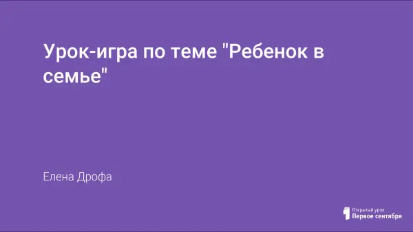 Урок разработан для 6-го класса и направлен на систематизацию знаний, позволяет формировать умения оценочных суждений о положении детей и о влиянии семьи и родителей на ребенка.