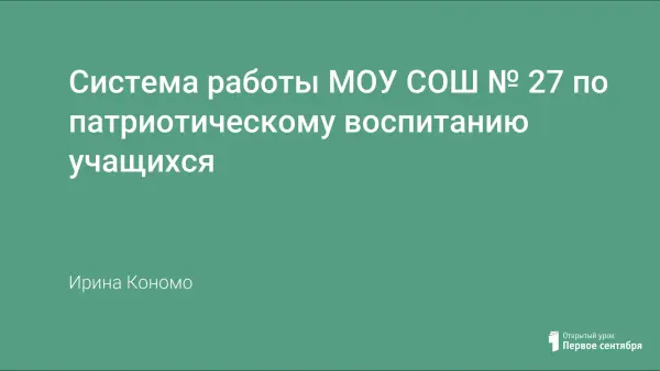 В современных условиях возникла необходимость в активизации массовой работы по патриотическому воспитанию. Поэтому не случайно была выбрана проблема воспитательной работы школы на 2006—2010 годы: «Ребёнок в пространстве Отечественной культуры». Главный акцент мы делаем на усилении патриотической направленности во внеурочной деятельности.