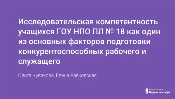 Исследовательская компетентность учащихся ГОУ НПО ПЛ № 18 как один из основных факторов подготовки конкурентоспособных рабочего и служащего