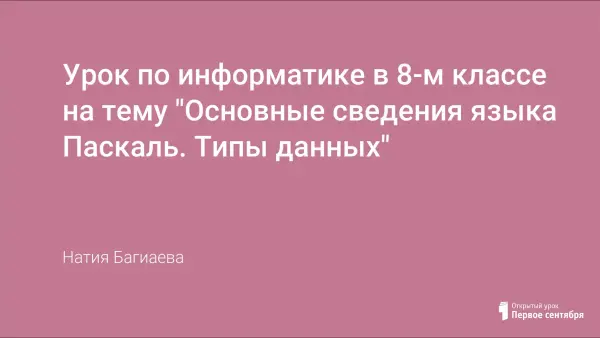 Цели урока: знание общих сведений о языке программирования Паскаль (история возникновения, алфавит и словарь, используемые типы данных, структура программы); анализ языка Паскаль как формального языка; представление о программировании как сфере возможной профессиональной деятельности.