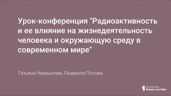 Урок-конференция "Радиоактивность и ее влияние на жизнедеятельность человека и окружающую среду в современном мире"