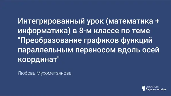 Это урок закрепления и совершенствования знаний. Цель урока – понимание алгоритмов построения графиков функций у = f(х+l)+m достигается просмотром презентации по теме. Предложенная презентация дает наглядные представления о преобразованиях графиков квадратичной функции и обратной пропорциональности.